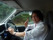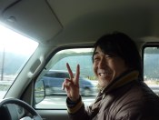 20 minutes later, a big white van came to a screeching halt. “Doko made?” the drivers asked while popping his head out the drivers side window. “Aso ni ikitidais” I replied. He motioned for me to get in, and we were off. His name was “Massa” and he was a 30 year old security camera maintenence man who was on his way to work. Super cool guy.